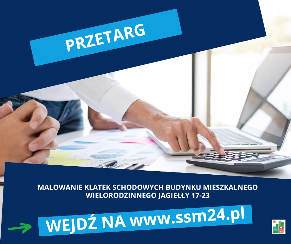 Informujemy, że na naszej stronie internetowej w zakładce Przetargi aktualne opublikowaliśmy treść przetargu na wykonanie malowania klatek schodowych budynku mieszkalnego wielorodzinnego ul. Jagiełły 17-23