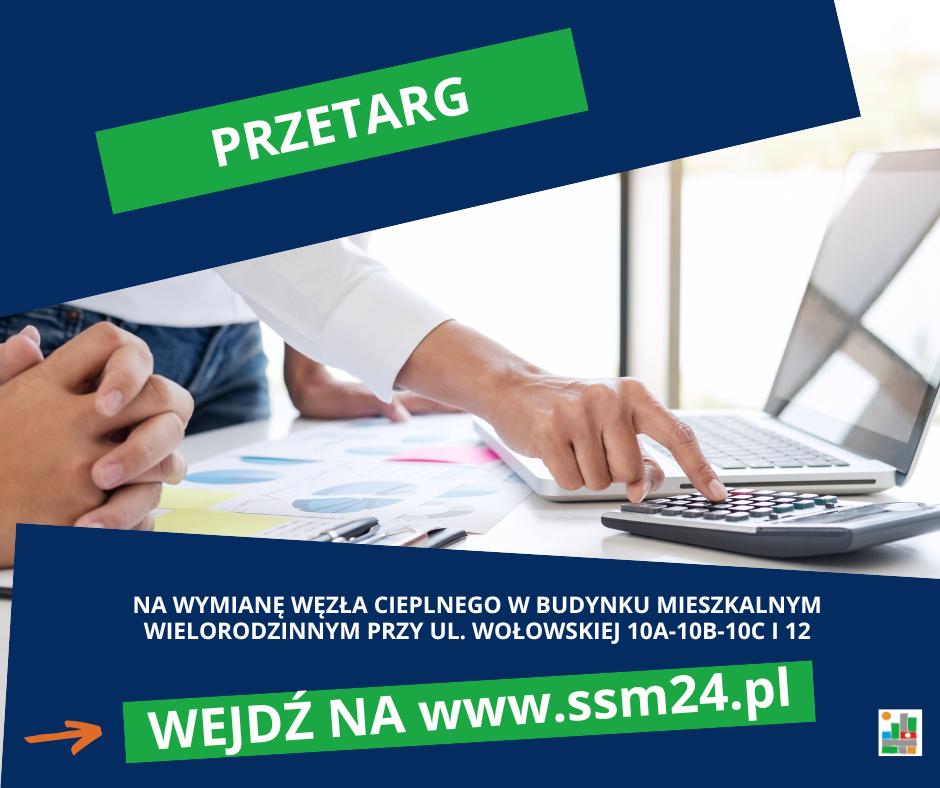Informujemy, że na naszej stronie internetowej w zakładce Przetargi aktualne opublikowaliśmy treść przetargu na wymianę węzła cieplnego w budynku mieszkalnym wielorodzinnym przy ul. Wołowskiej 10A-10B-10C i 12