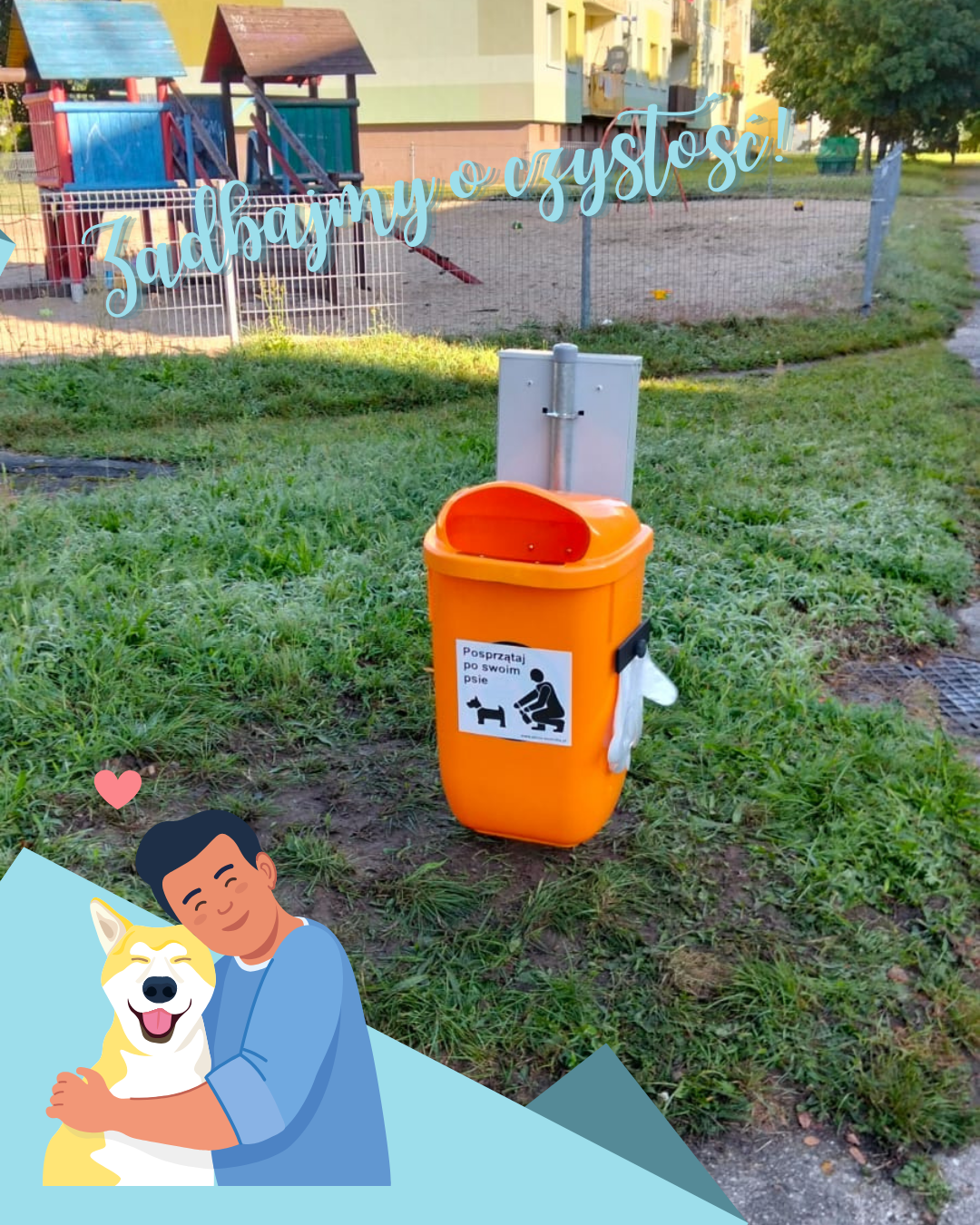 By ułatwić to zdanie w kilku miejscach zamontowaliśmy specjalne kosze na psie odchody i podajniki woreczków.